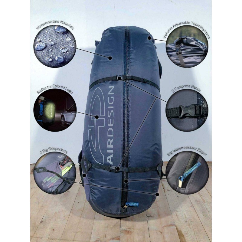 Trail 55L: 680g / 28x32x60-85cm – Pour voile cross-country légère et cocon léger avec protecteur gonflable, casque.