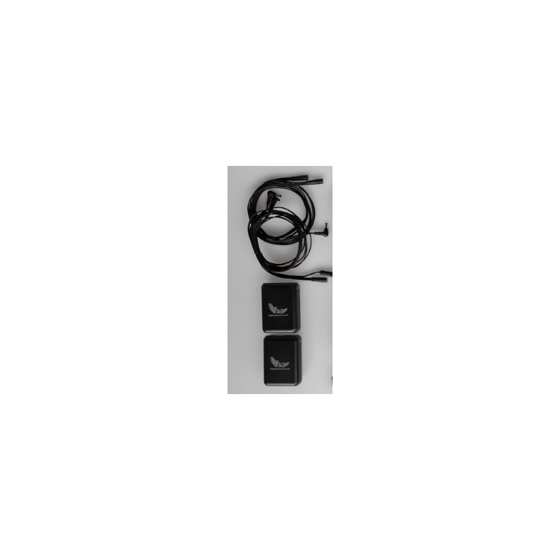 Deux powerbanks Li-Po 7,4 V 20 000 mAh, deux câbles rallonge pour batterie (câble simple), un câble rallonge pour batterie (câble en Y), deux câbles de charge USB-A vers USB-C